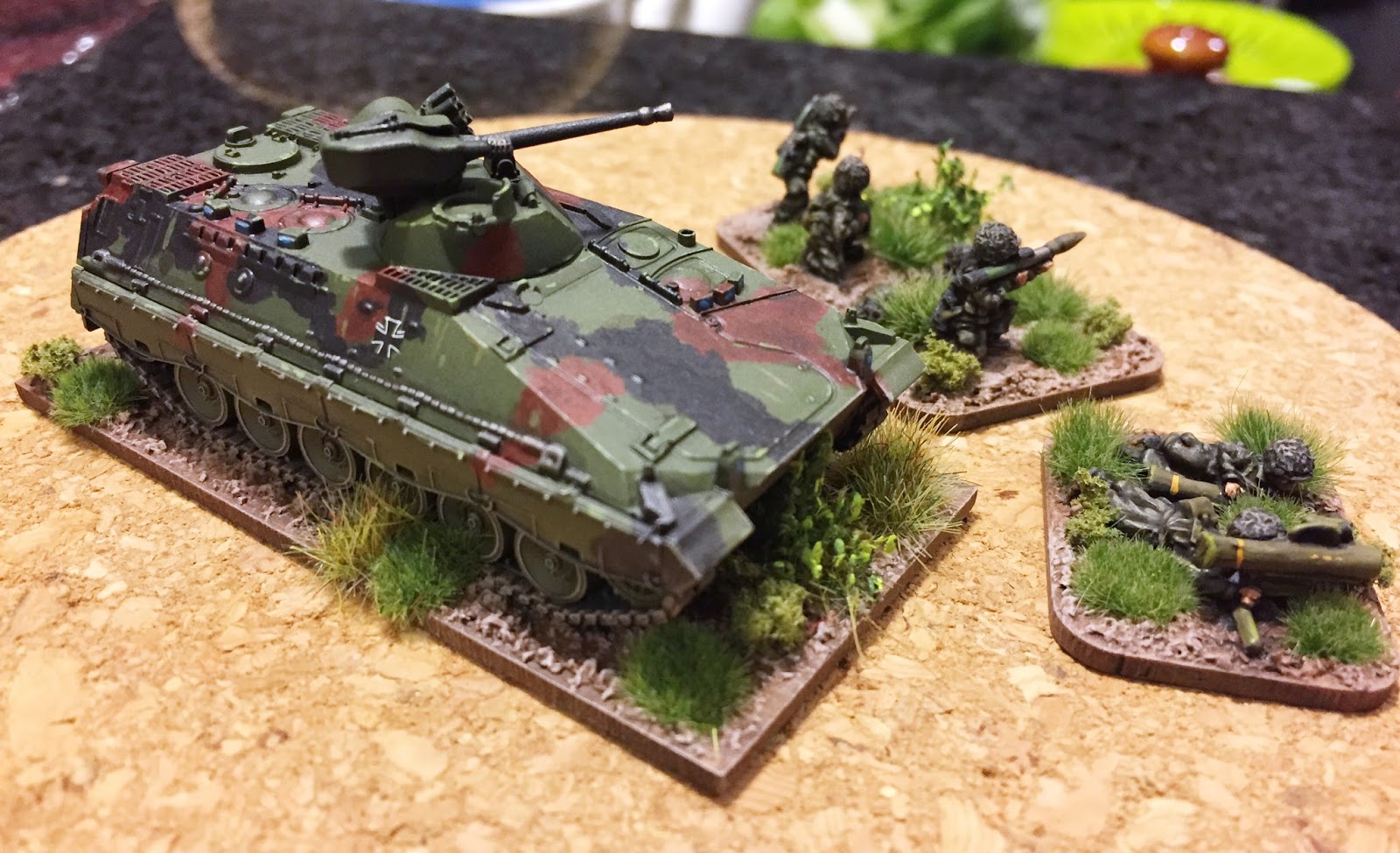 I had high hope for this bonus round, but it was not to be this week. Work, life etc. So for the "West" theme round I binned my pretension to instead offer a single 15mm vehicle, a Marder infantry fighting vehicle from the West German Army in 15mm, finished very late last night. This is a model from Battlefront's super fun "Team Yankee" game of Cold-War-gone-hot rules.